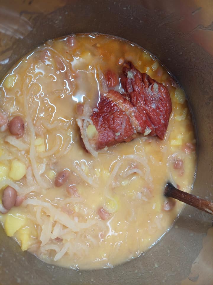 Fižolova mineštra s svinsjkim mesom in slanino